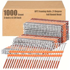 1000 Count 21 Degree Framing Nails Full Round Head Collated Framing Ring Shank Hot Dipped Galvanized Nails Plastic Row Fixed For All Pressure Treated Lumber (3 Inch X 0.120 Inch)