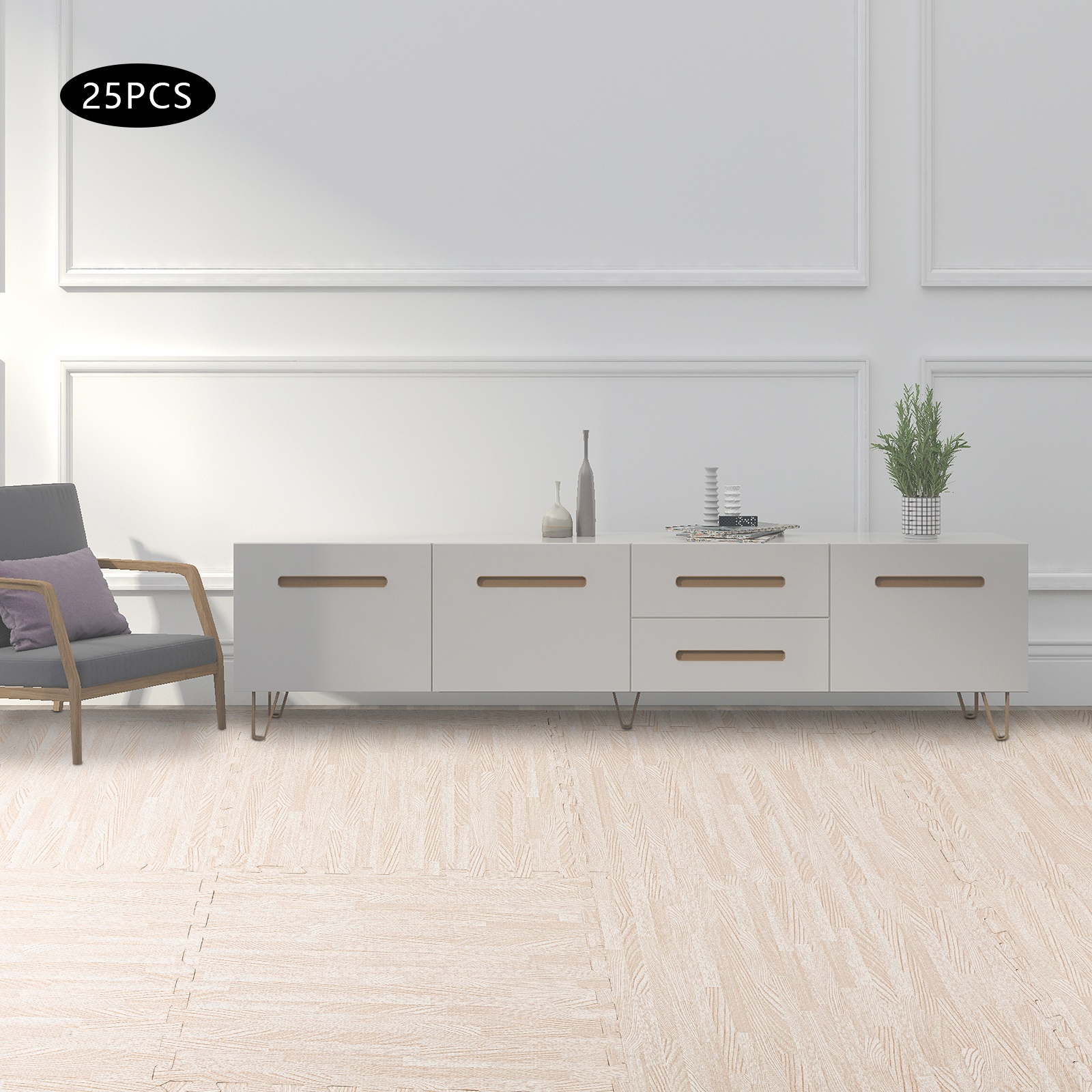25pcs 24×24 Inch White Wood Grain Anti-Fatigue Floor Mats – Interlocking EVA Foam Tiles with Border, Soft Comfort Standing, Easy Click Installation, Durable PE Hybrid Foam for Home Office Kitchen Bathroom, Bathroom Floor Mats, Comfortable Standing, Modern Flooring