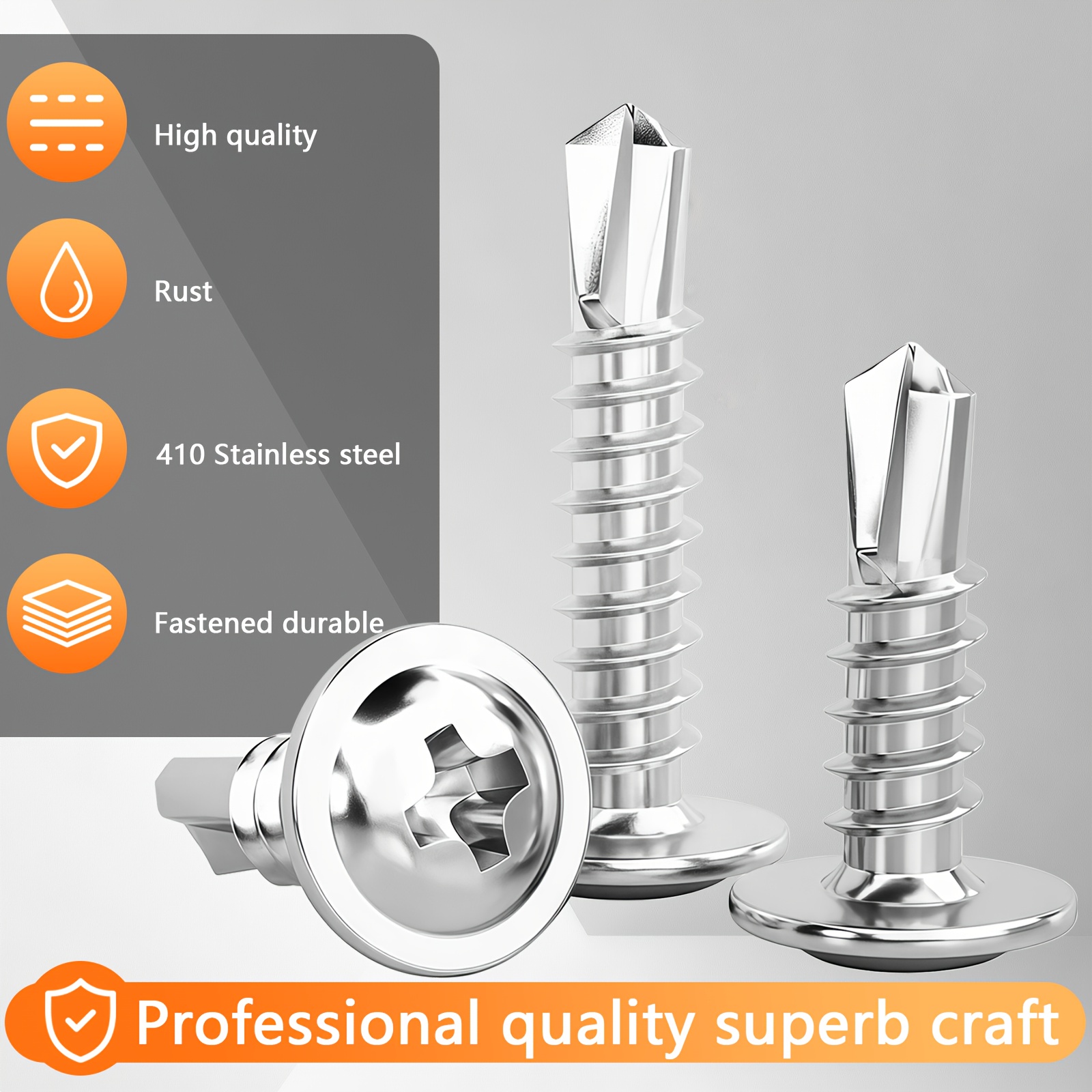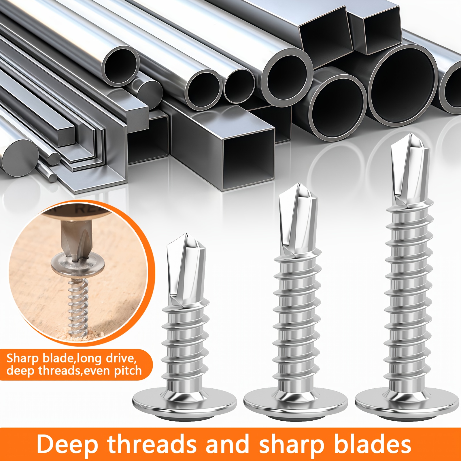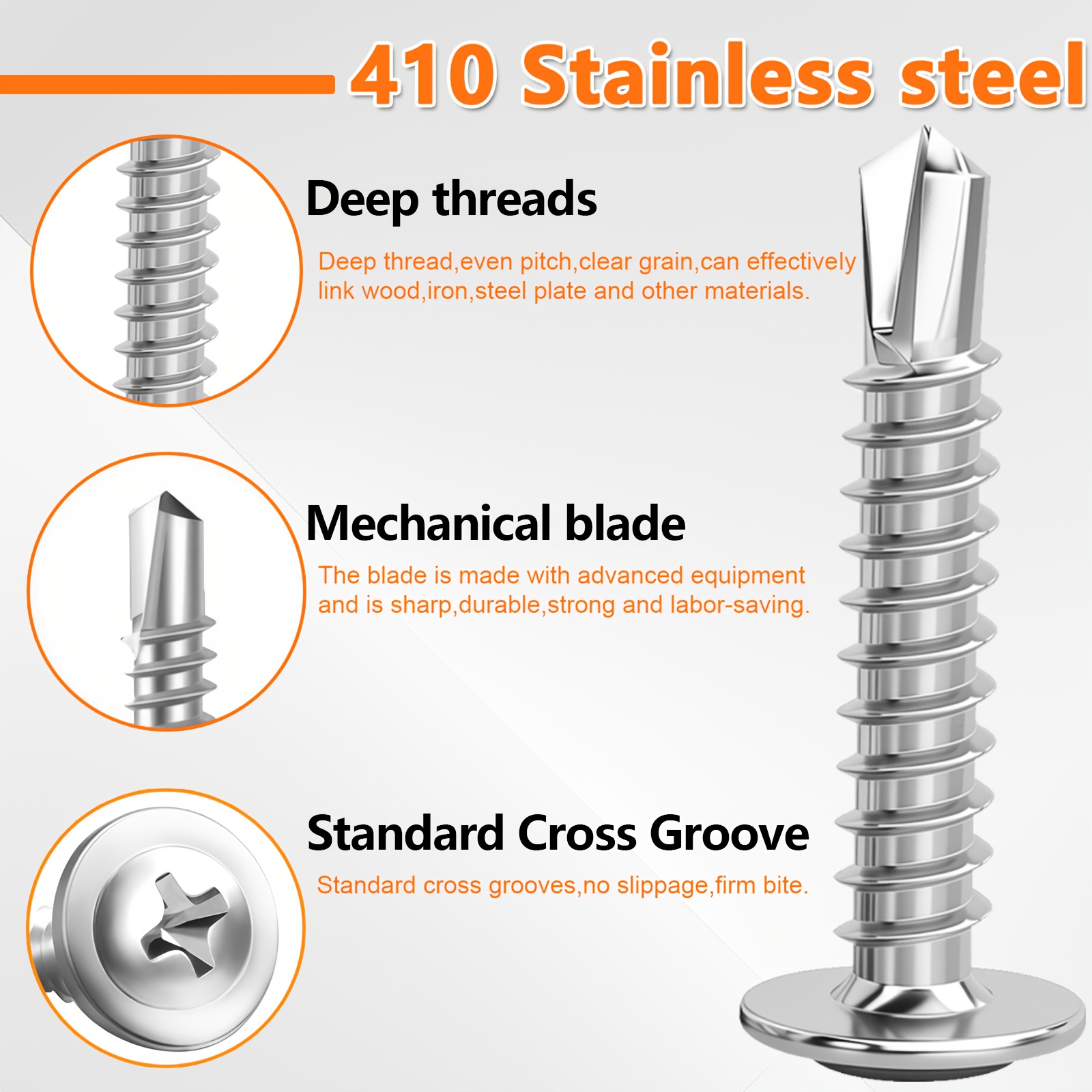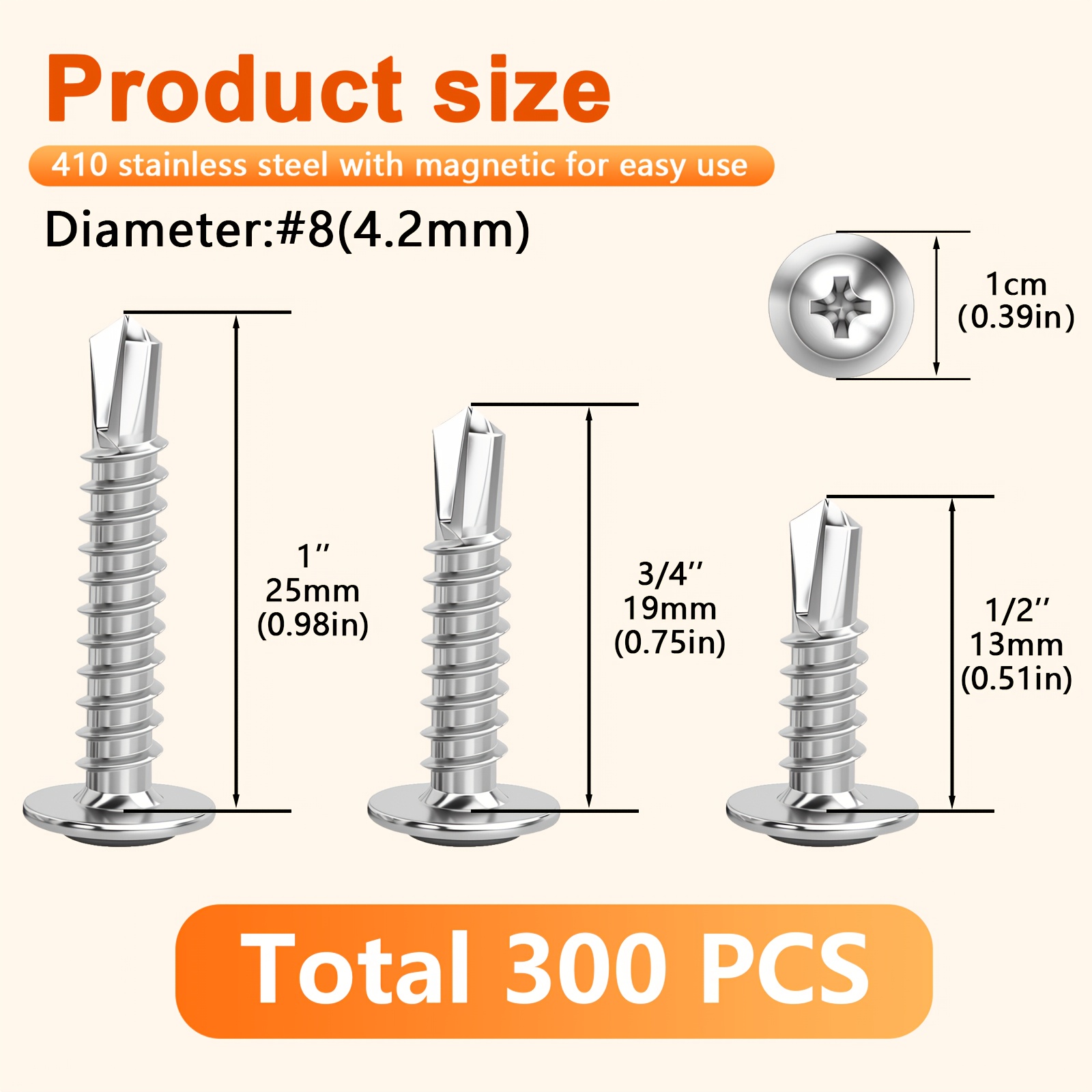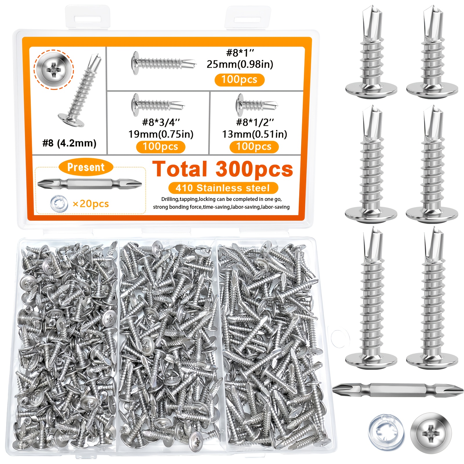 300pcs 410 Stainless Steel Self-tapping Screw Set, Round Head Cross Design – Includes Screwdriver Bit And Washers, Available In 1u002F2