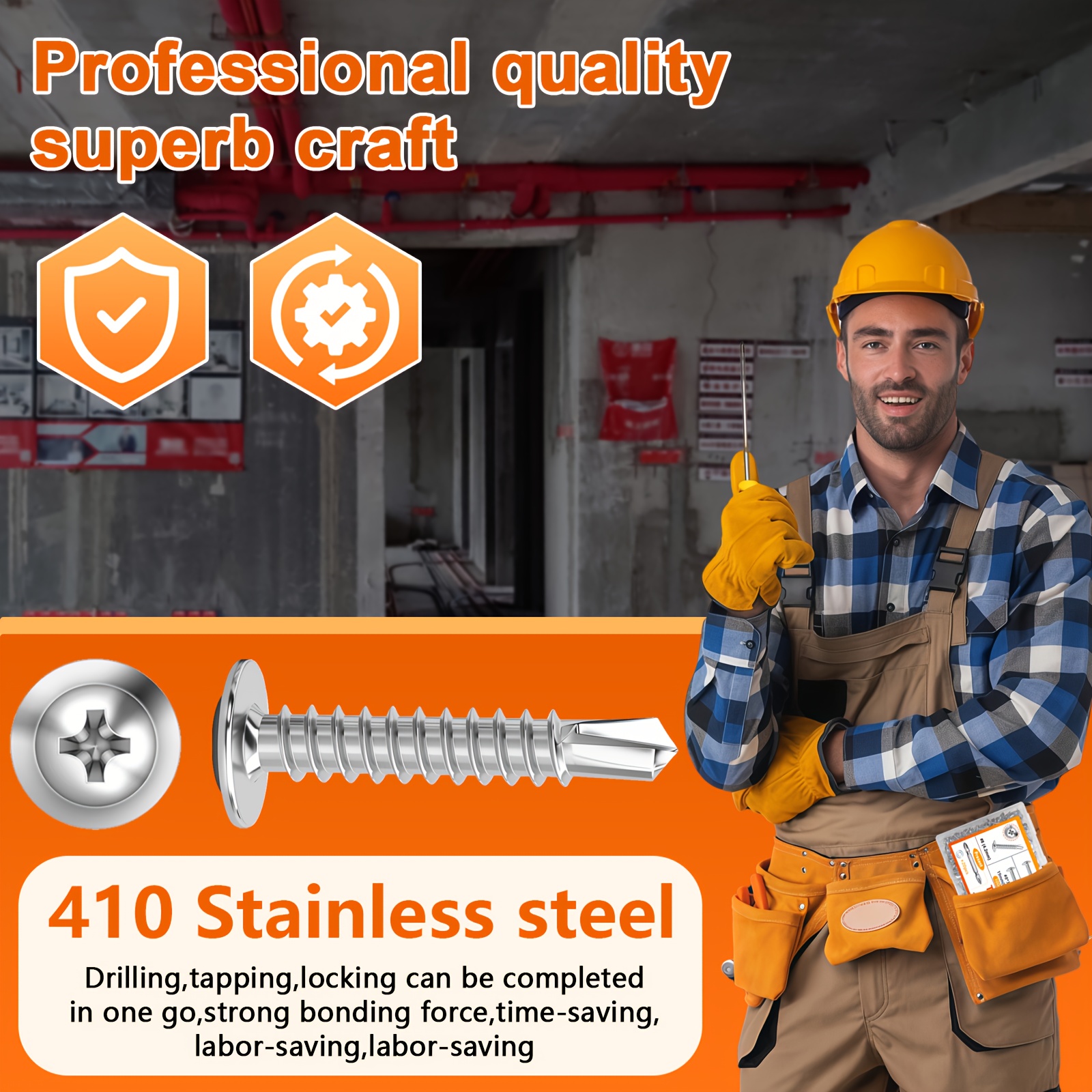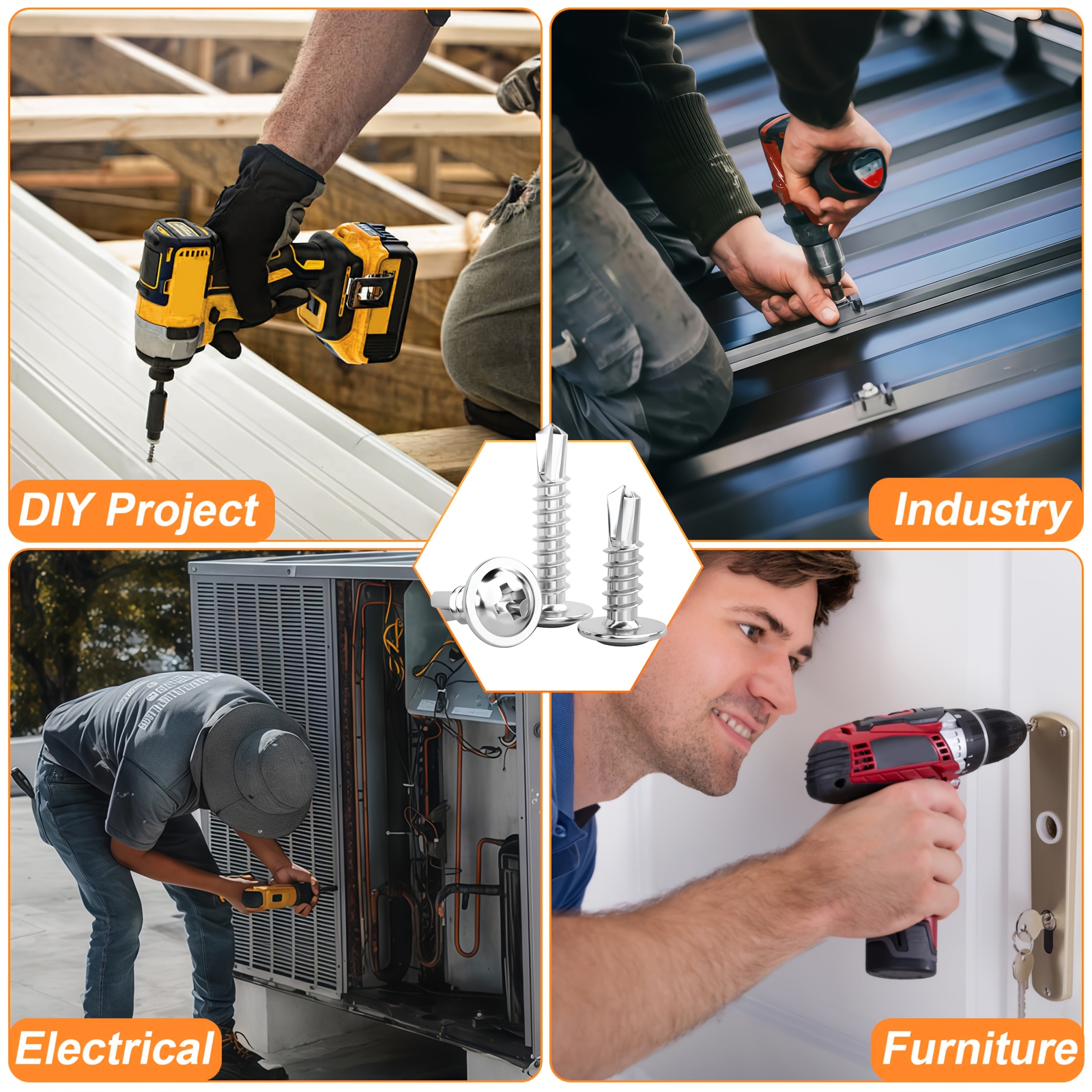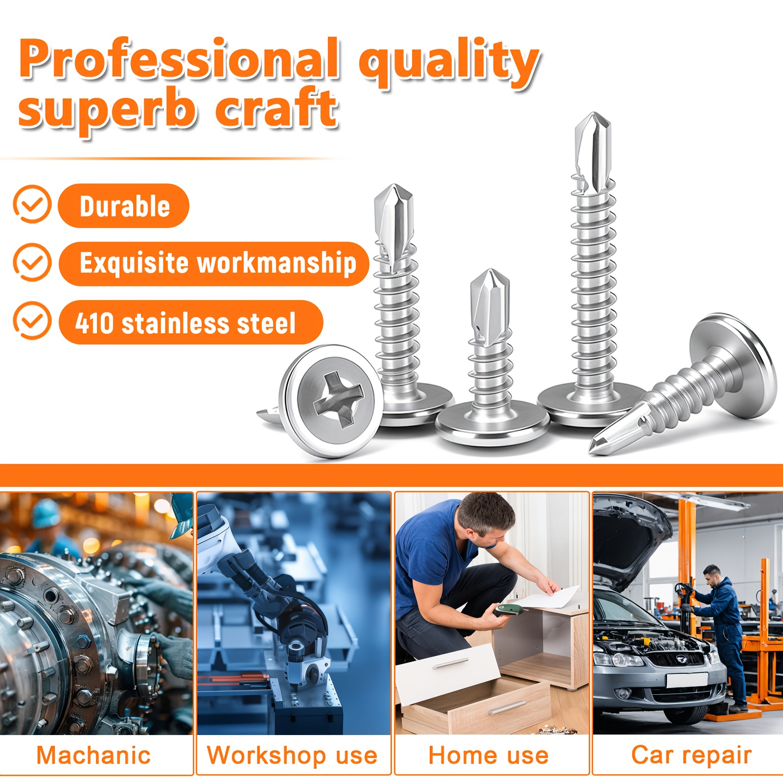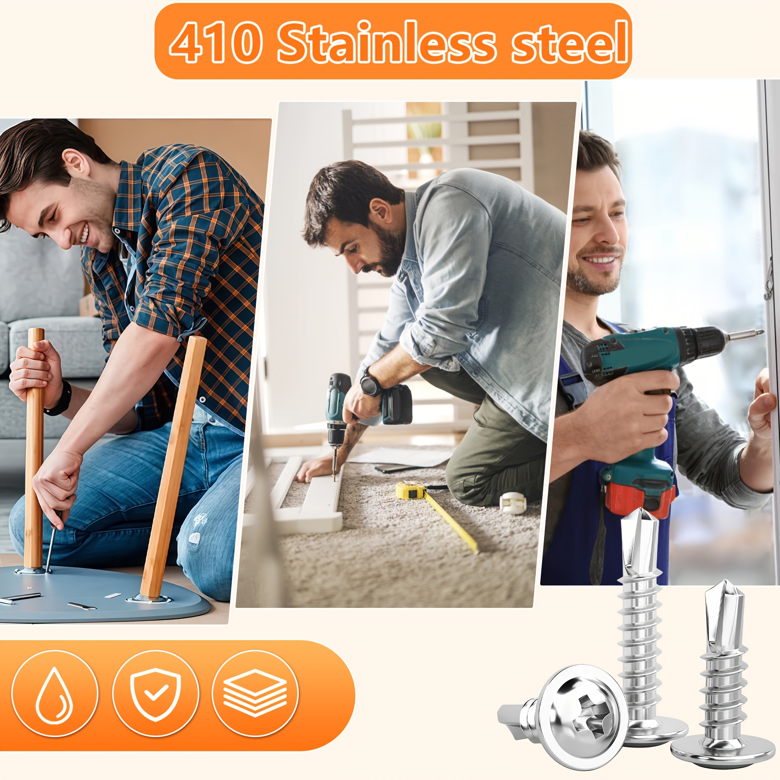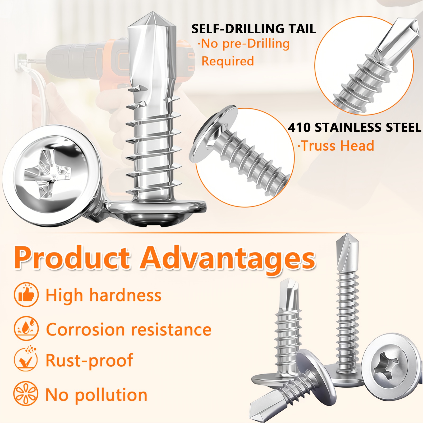 300pcs 410 Stainless Steel Self-tapping Screw Set, Round Head Cross Design – Includes Screwdriver Bit And Washers, Available In 1u002F2