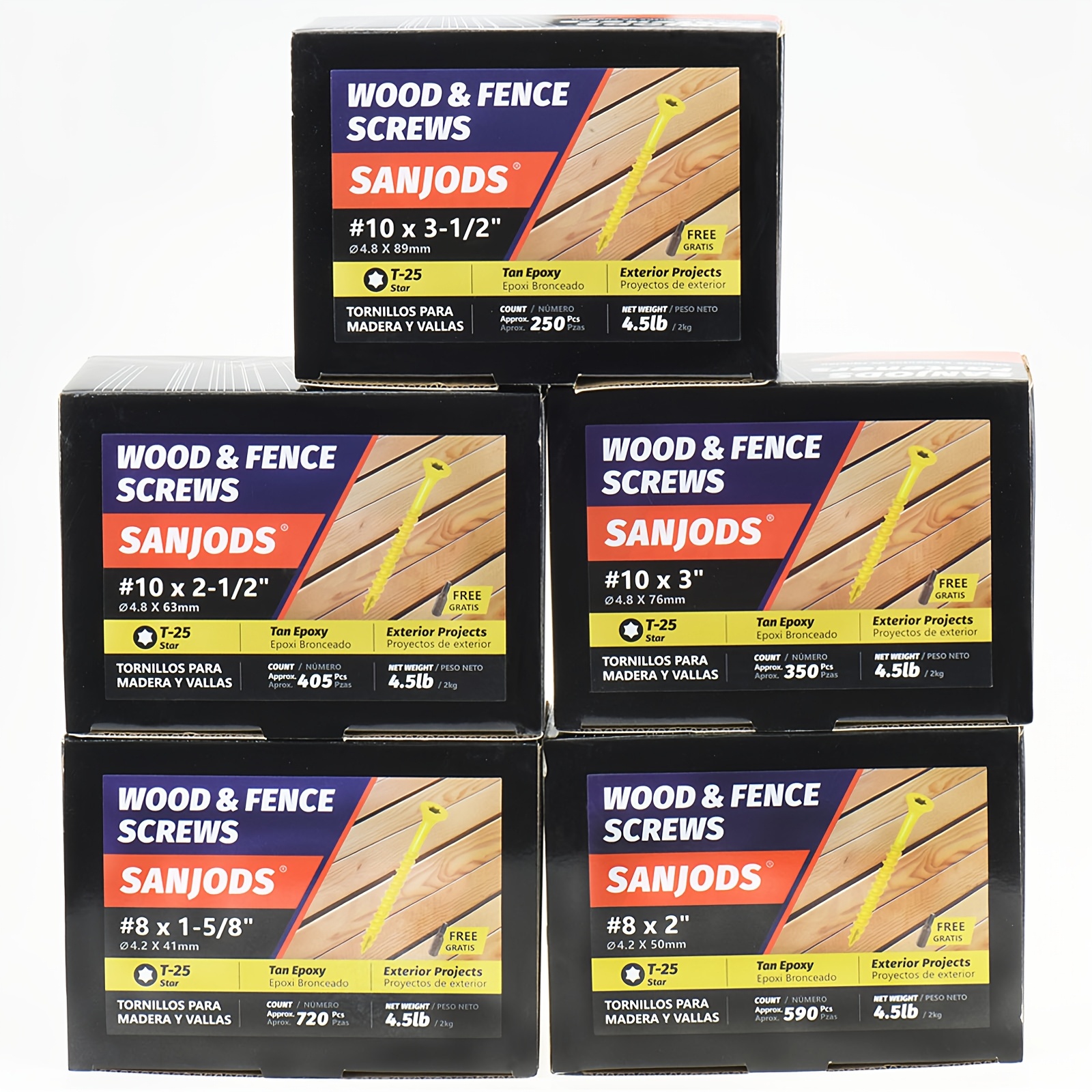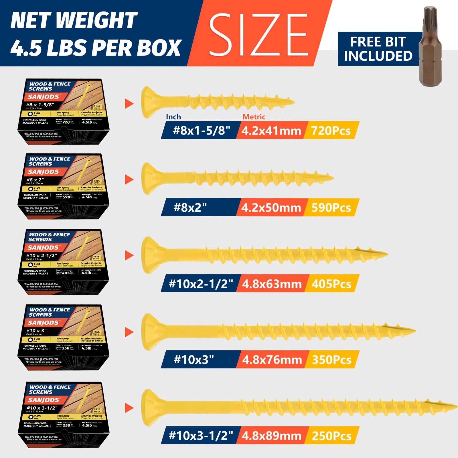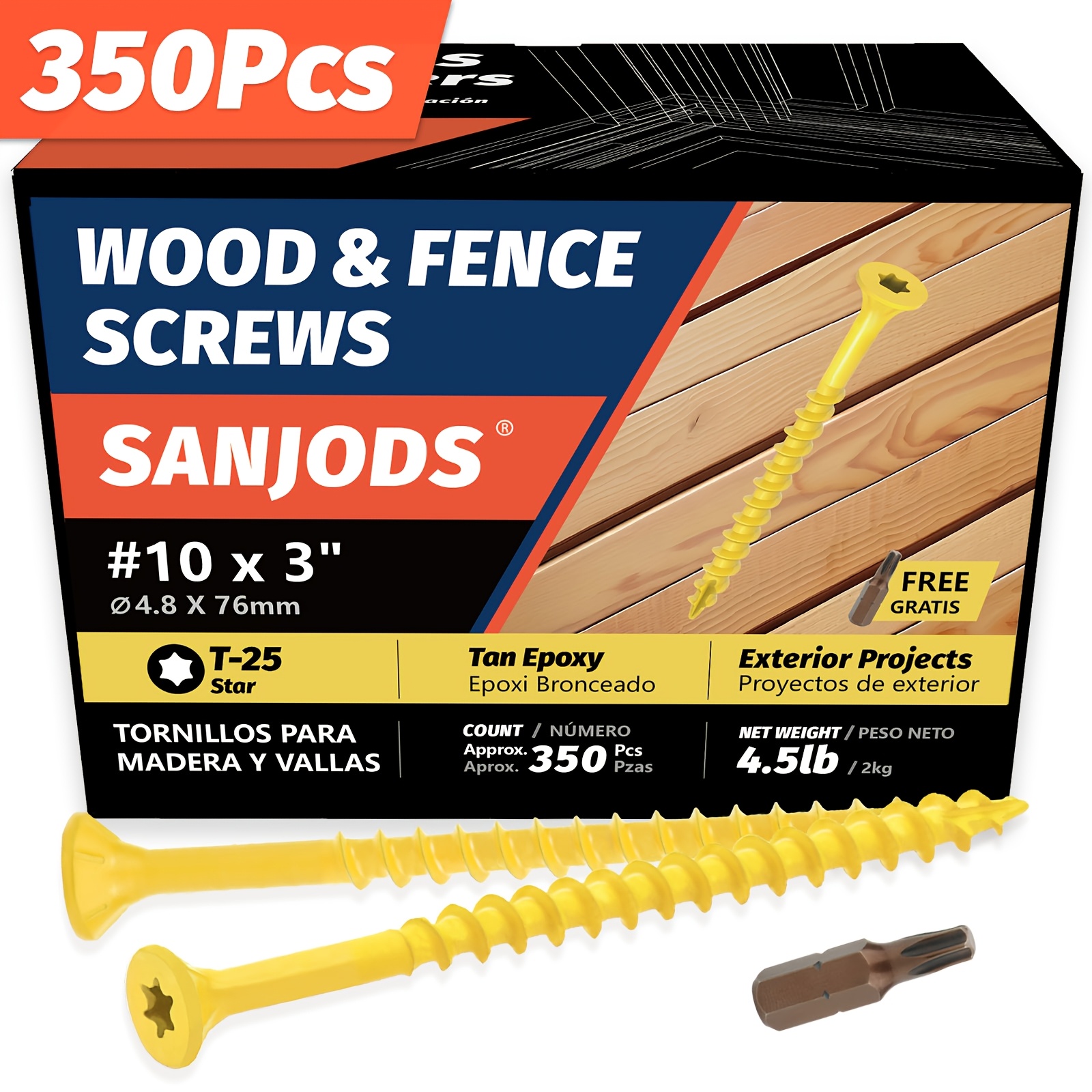 4.5lb??2 #8 & #10 Deck and Wood Screws – Rust-Resistant, Exterior Epoxy Coated, Torx Drive (T25 Bit Included), Tan, Construction Fasteners, Flat Head Design, Righthand Thread, Highstrength Steel, Durable Construction, DIY Enthusiasts, Construction Professionals