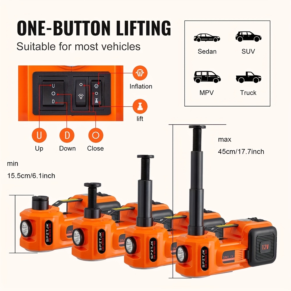 5-ton 12V Electric Jack – Powerful Impact Wrench & Air Compressor & Super Bright Work Light! Garageu002FRoadside Emergency Tire Change Hero for Sedanu002FSUVu002FMPV, Car Jack for Tire Change, Roadside Assistance, Garage Tools, Compact Design