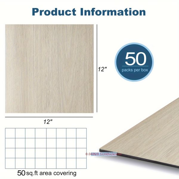 50pcs Peel And Stick Floor Tiles, Peel And Stick Flooring, Vinyl Flooring, Flooring, Easy DIY Installation For Living Room, Bedroom, Office, Various Indoor Places(50 Sq.Ft Coverage)