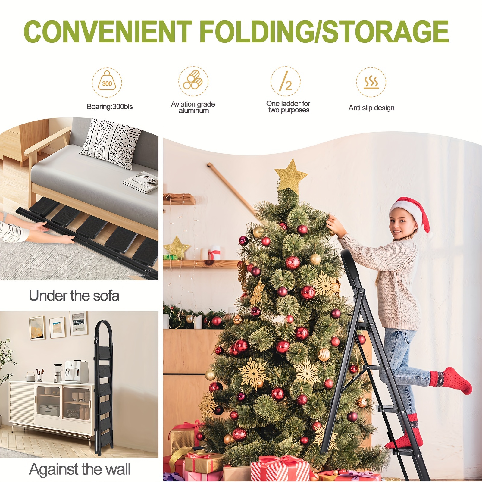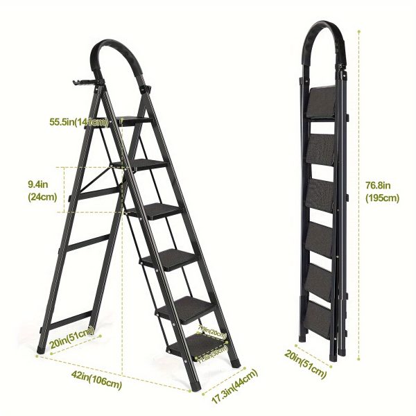- 6-step Ladder Collapsible Footstool Portable Ladder Anti-slide