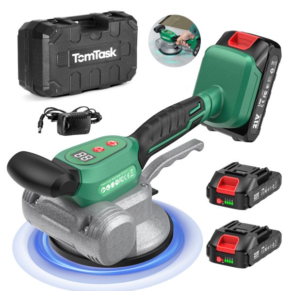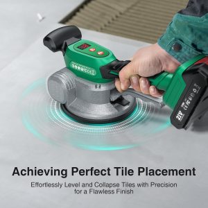 Cordless Tile Vibration Tool with Two 2.0Ah Batteries (Lasting 6 Hours), Featuring 12 Adjustable Levels, a Tile Suction Cup, And Designed for Installing Large Tiles on Floors And Walls in Bathrooms.