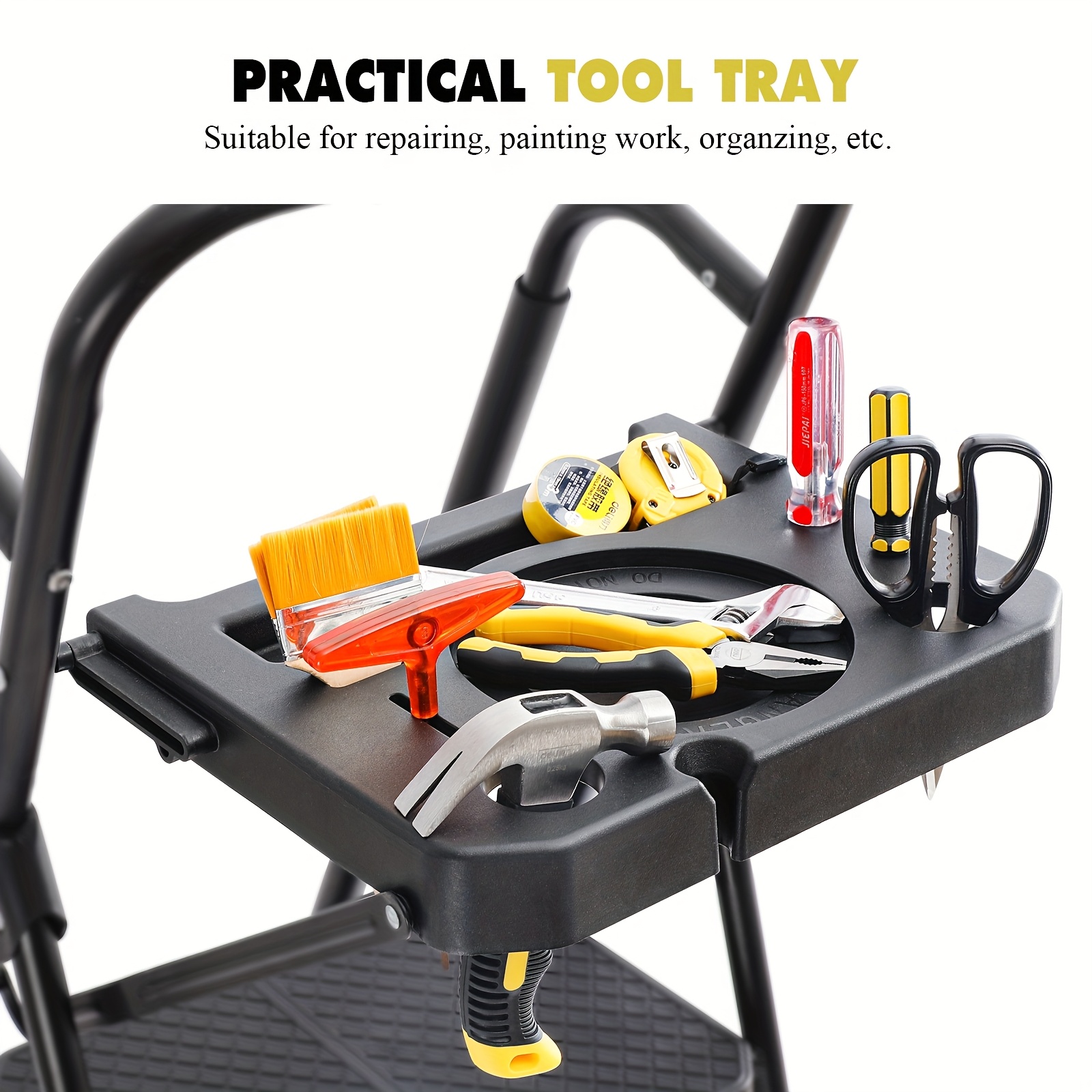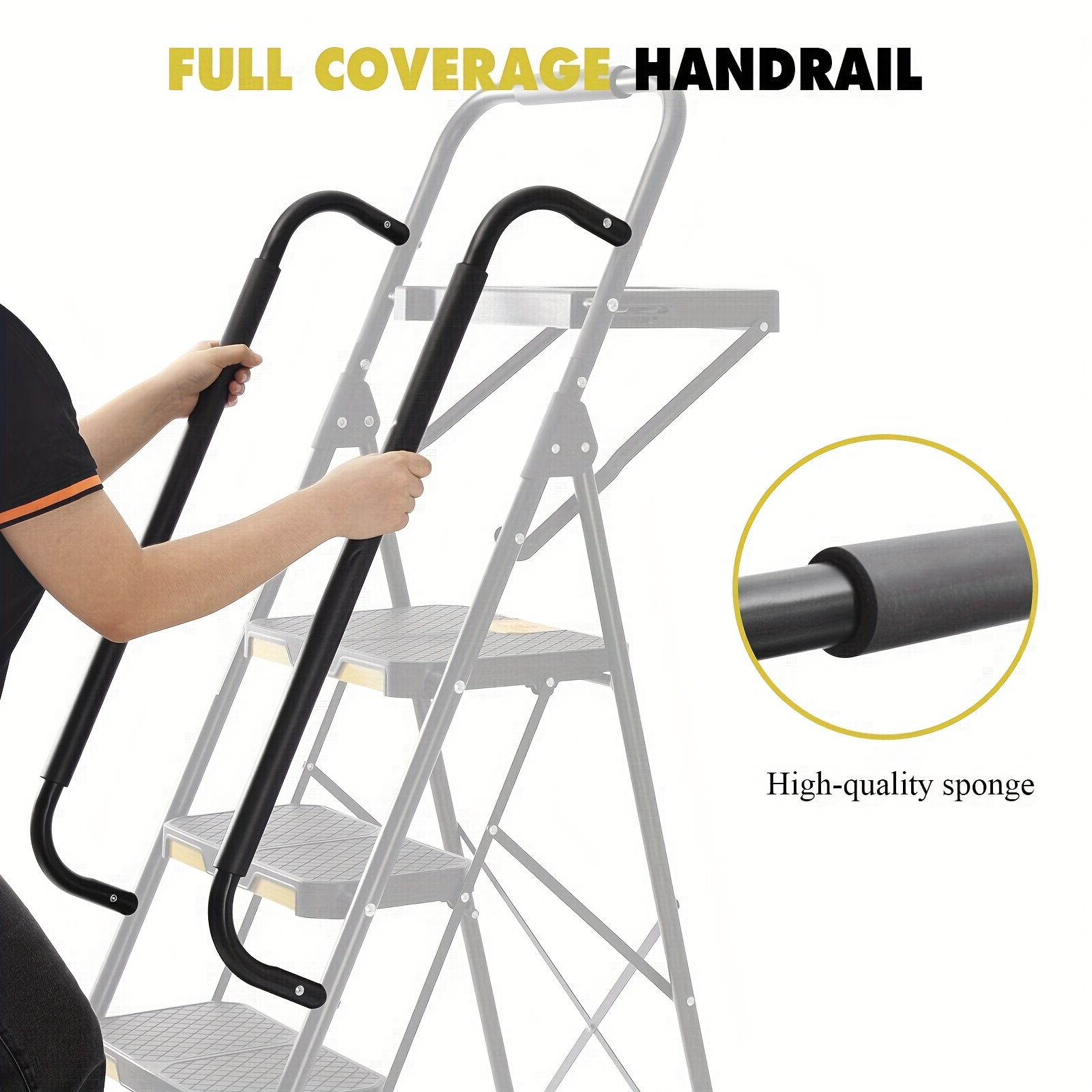 - KINGRACK 5 Step Folding Ladder With Handrails & Tool Platform, Heavy-Duty Steel Ladder For Home, Outdoor & Garage, 800 LBS Capacity, Black