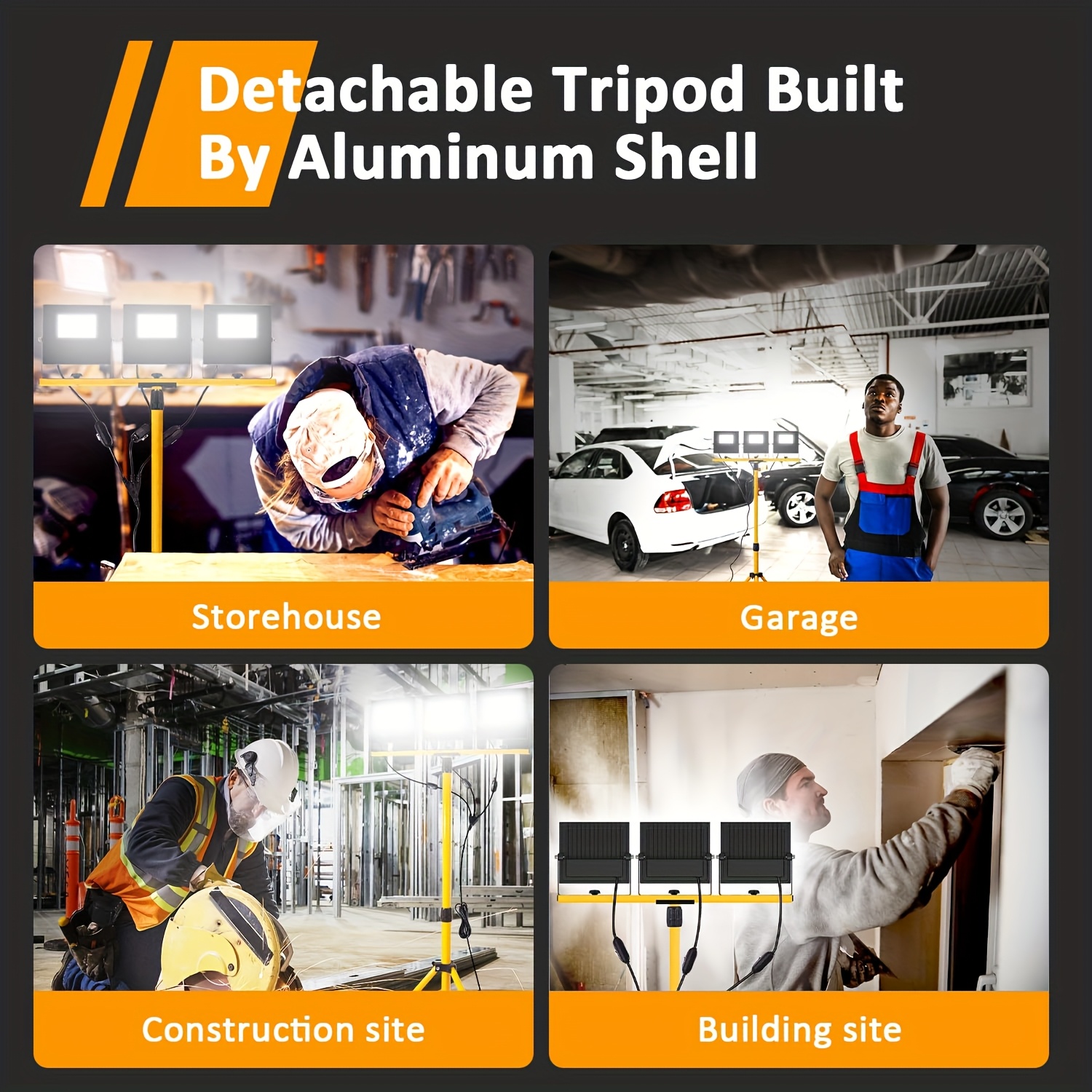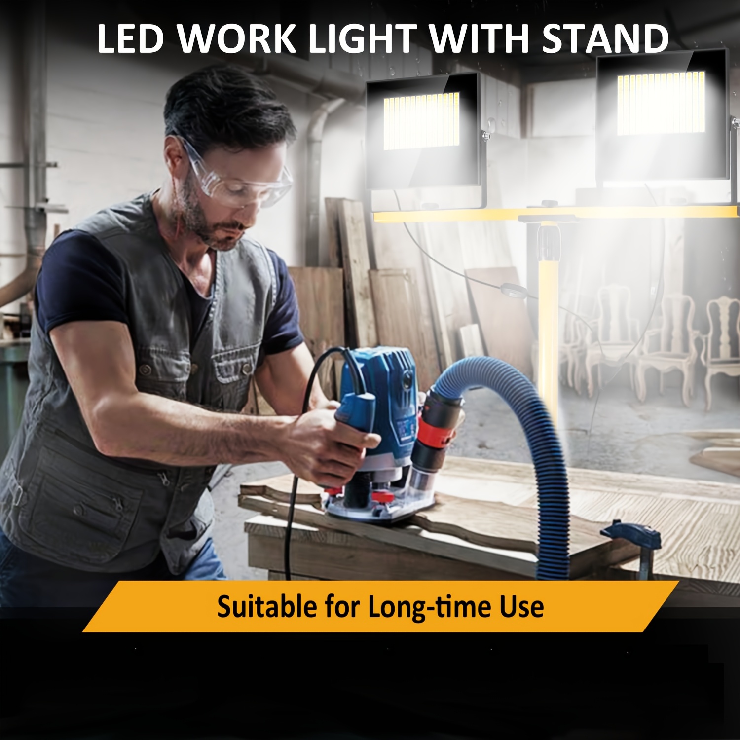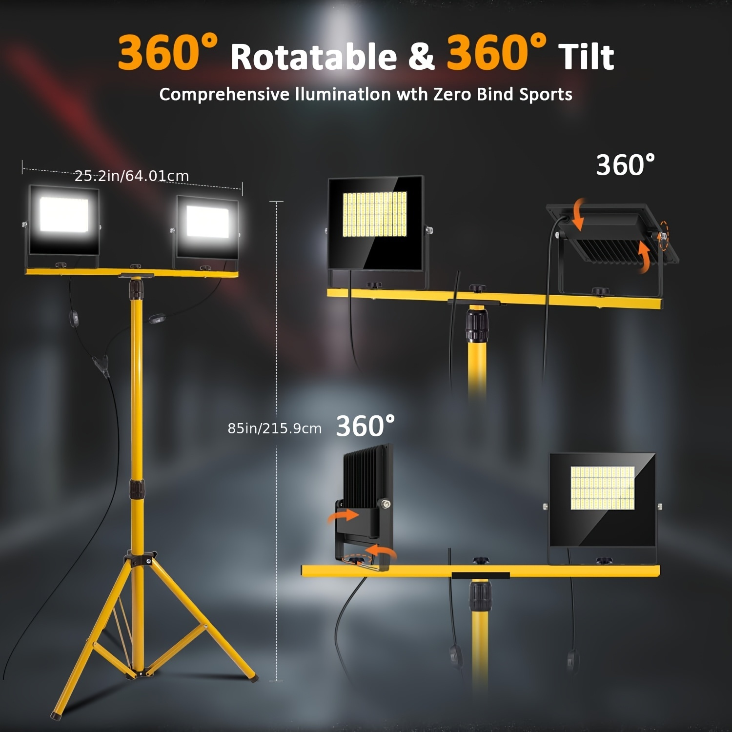 LED Work Lights With 24000 Lumen Stand, Floodlight Work Light 2 Adjustable Head Work Light Two Lights With Independent Switches 16FT Tripod Stand Suitable For Lighting In Various Places