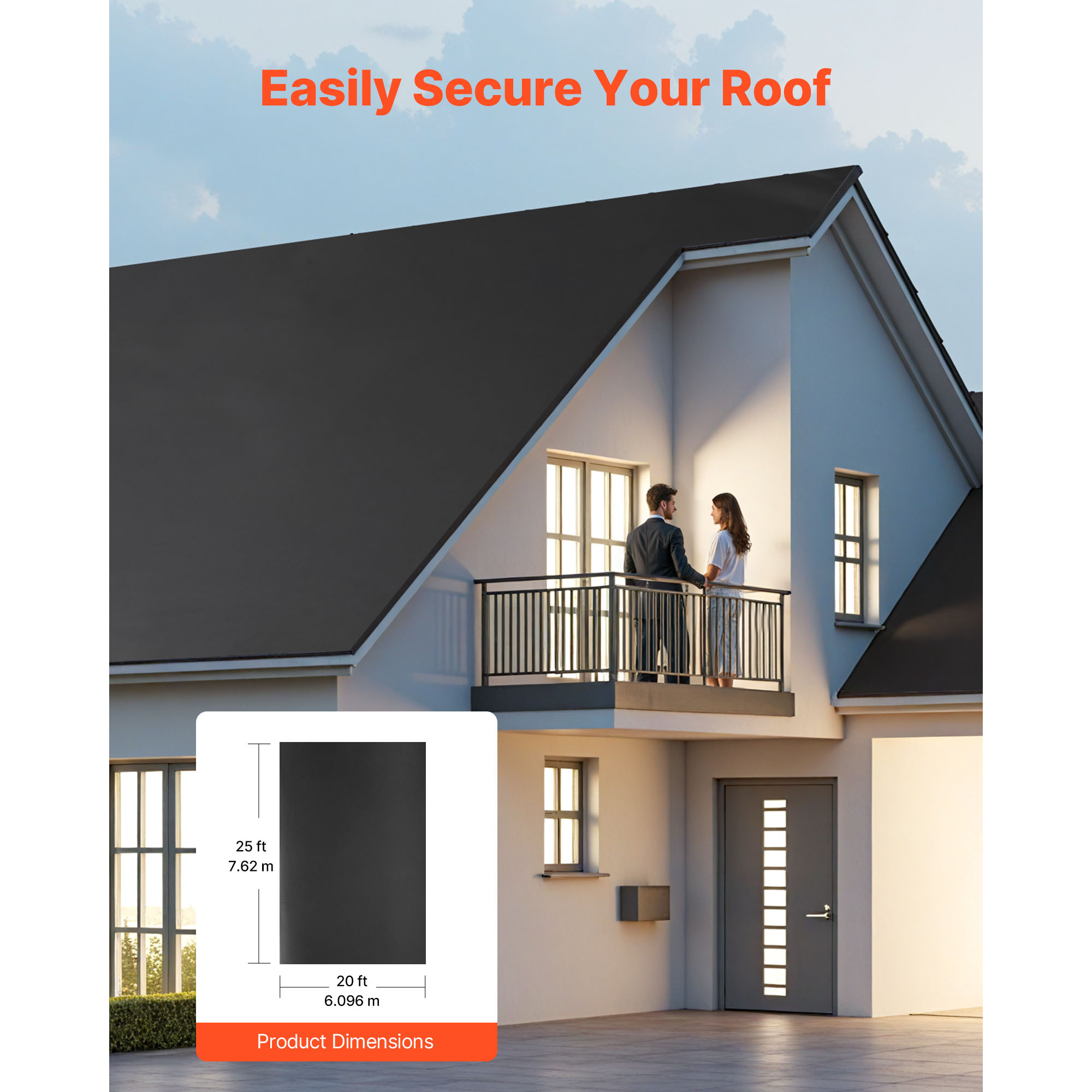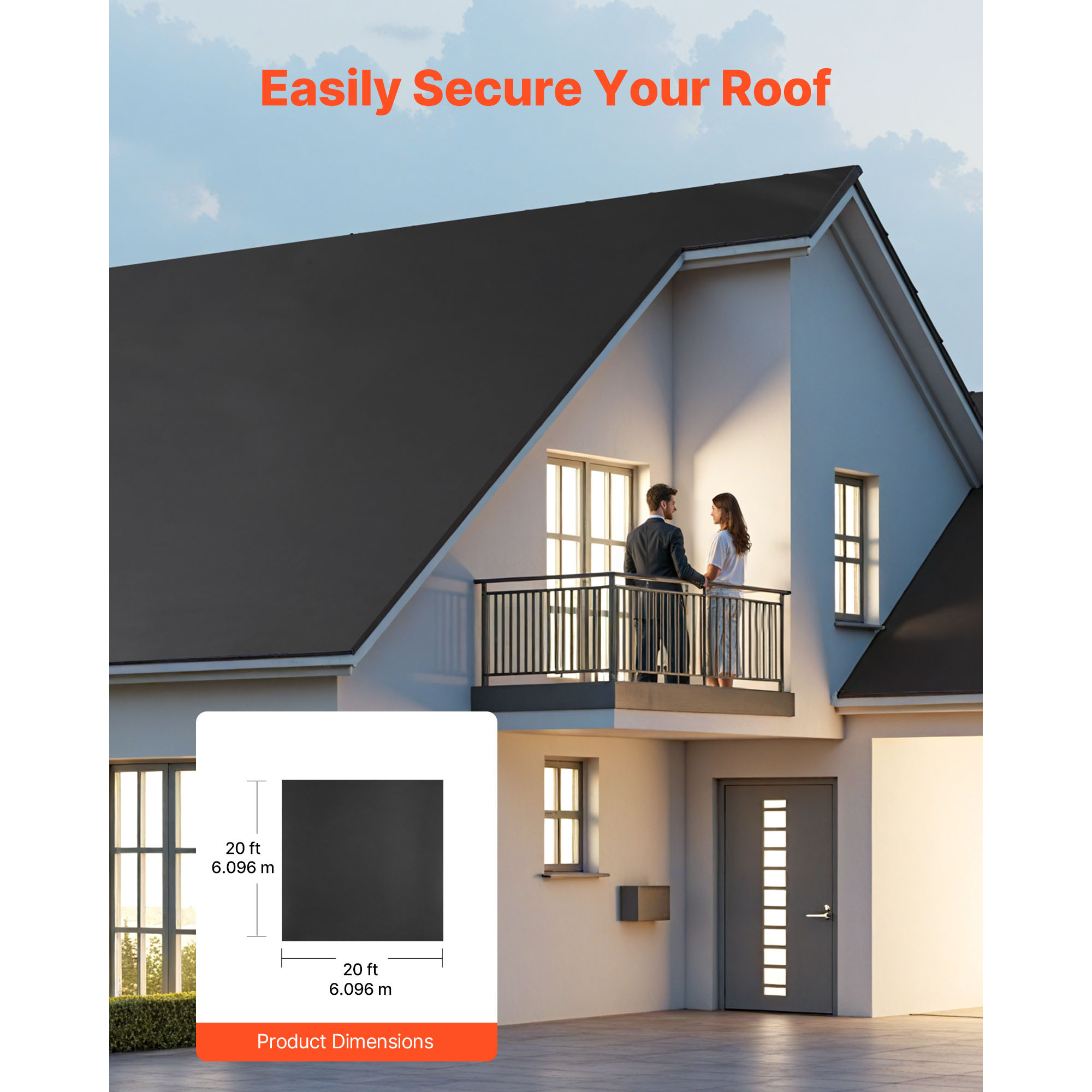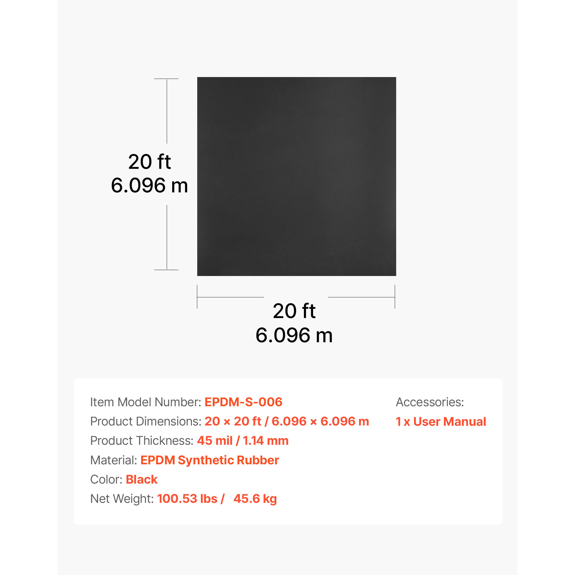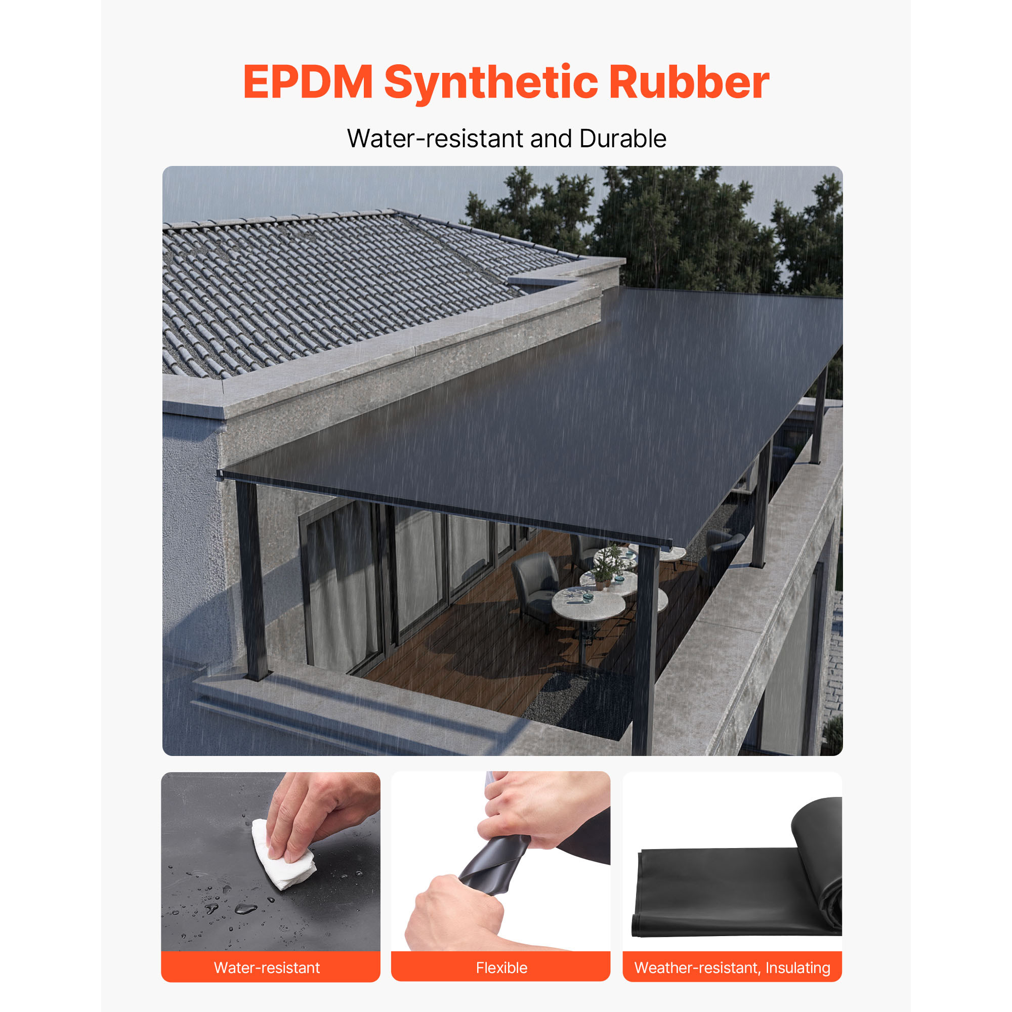 VEVOR 10 x 15 ft u002F 15 x 15 ft u002F 15 x 20 ft u002F 15 x 25 ft u002F 15 x 30 ft u002F20 x 20 ft u002F 20 x 25 ft Roll Roofing 45 mil EPDM Rubber Roofing for RVs, Roofs, Ponds
