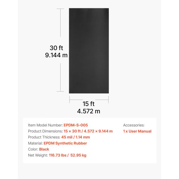 VEVOR 10 x 15 ft u002F 15 x 15 ft u002F 15 x 20 ft u002F 15 x 25 ft u002F 15 x 30 ft u002F20 x 20 ft u002F 20 x 25 ft Roll Roofing 45 mil EPDM Rubber Roofing for RVs, Roofs, Ponds