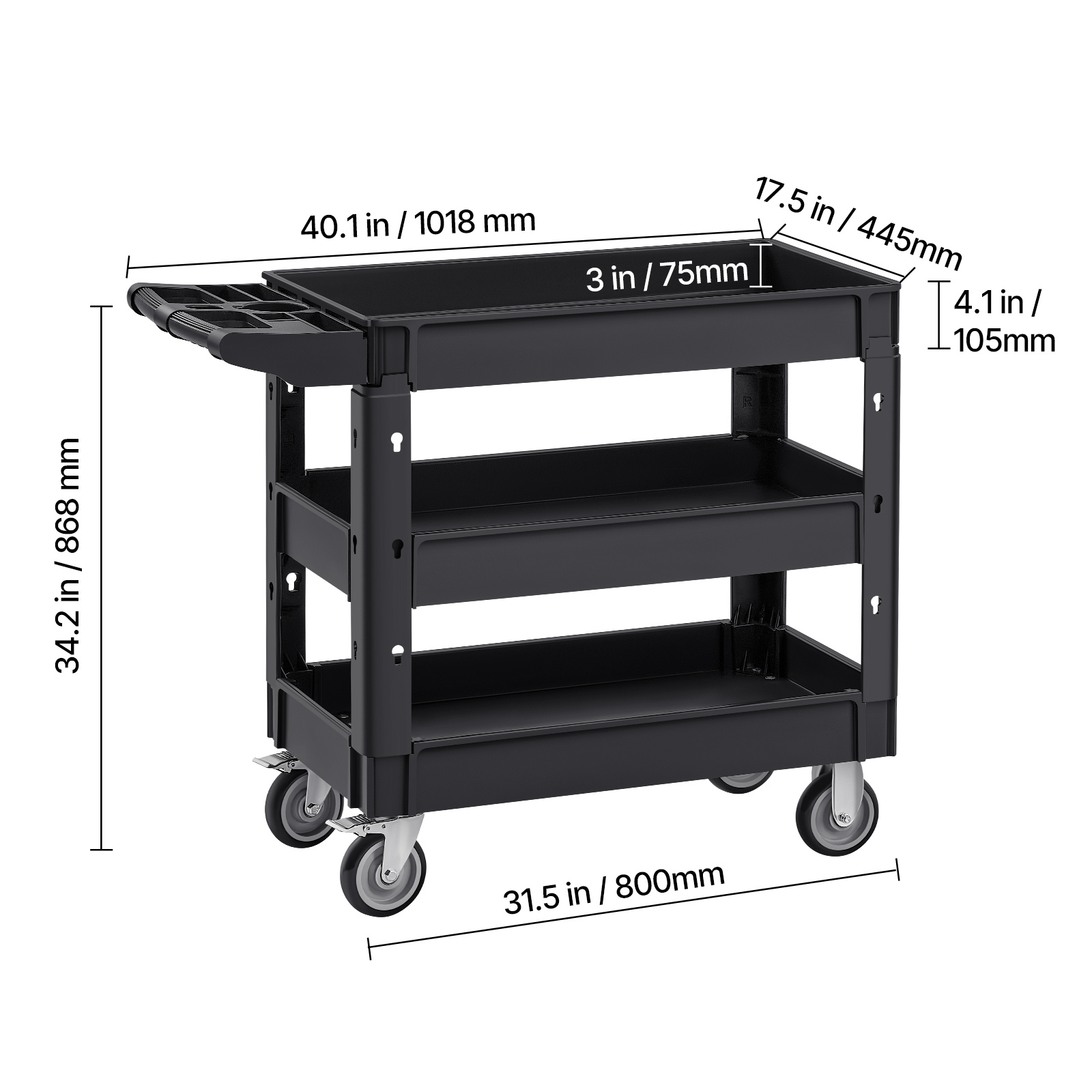 VEVOR Utility Service Cart 2 Shelfu002F3 Shelf 550LBS 360?? Swivel Wheels (2 with Brakes)