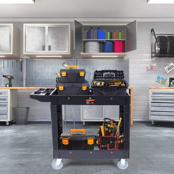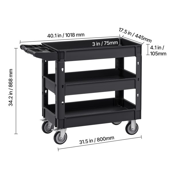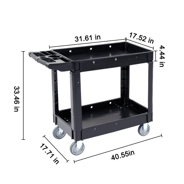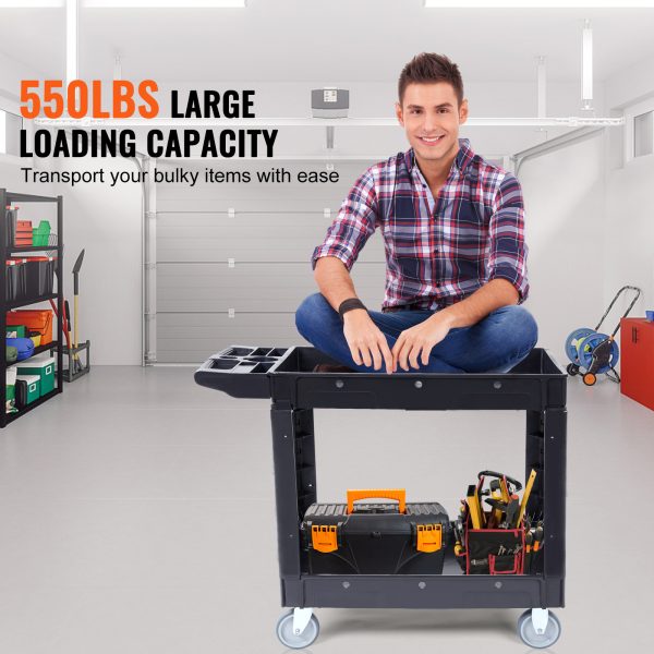 Strong Weight Capacity: VEVOR 2/3 shelf utility cart can effortless transport 550 lbs heavy loads. such as oversized cartons. large filing cabinets. and hefty toolboxes. Quality polypropylene material is corrosion-resistant. impervious to debris. and easy to clean. High-density structural foam construction makes this utility cart sturdy. lightweight. and maneuverable. ideal for long-term heavy-duty transportation needs.