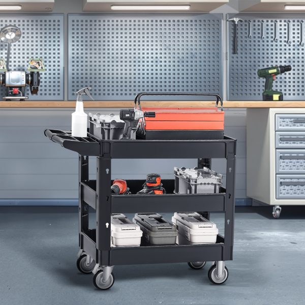 VEVOR Utility Service Cart 2 Shelfu002F3 Shelf 550LBS 360?? Swivel Wheels (2 with Brakes)